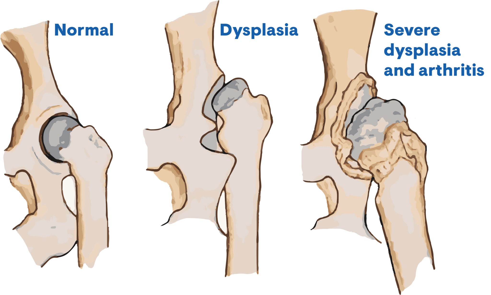 El diagnóstico se realiza a través de radiografías y el tratamiento puede incluir cambios en la dieta, medicamentos y cirugía. La detección temprana de la displasia de cadera o codo y el cuidado veterinario son esenciales para mejorar la calidad de vida del perro, es decir, mantener su bienestar físico, mental y emocional.